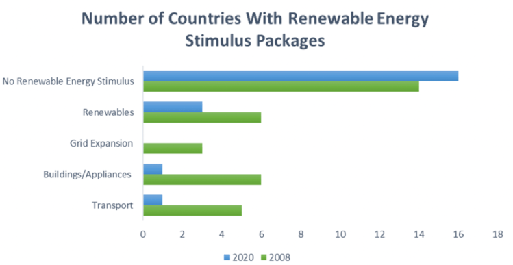 Fast forward to 2020 and few countries supported renewable energy as a key investment area, instead doubling down on fossil fuel support. That said this report covers immediate responses focusing on job and business protection. And things seem to be changing,